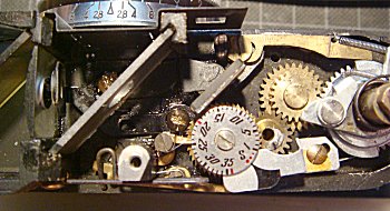 ![]() 距離計不動の原因は、距離計カムの固着でした。ベンジンを注して古いグリスなどを きれいにしながら動くようにしました。あまり工作精度のよい部品群ではないので 苦労します。 |