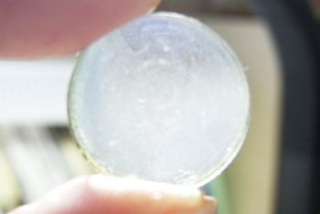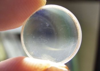最後の手段で、酸化セリウムで研磨する ことにしました。レンズ曲面に合わせた 専用スポンジで磨きます。酸化セリウム に水を混ぜながら根気よく磨いた結果が 写真の状態です。なお、レンズ研磨は最 終手段ですので、自己責任でお願いします。