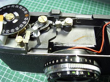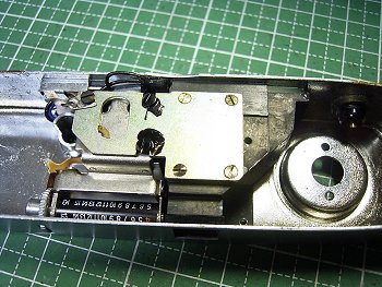 ボディー側の構造もシンプルそのもの、堅実な作りです。 露出計が軍艦部にあるため、巻き上げ機構は、底部にあります。