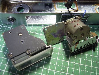 ファインダーユニットと、露出計です。どちらもコンパクトで 部品はしっかりと作られています。故障は少なかったのではないでしょうか。 ファインダーの蓋を外して、ガラスをクリーニングしました。