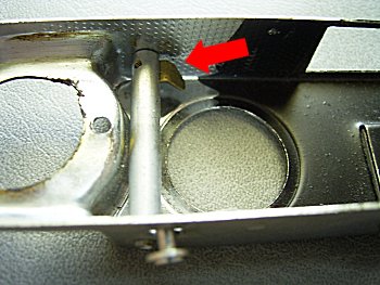 ![]() これで巻き上げ機構は理解できたのですが、撮影後に巻き戻しができないことに 気が付きました。軍艦部を開くと、赤矢印の部品がストッパーになっていました。 この部品を下方に押し込むとストッパーが解除されます。 |