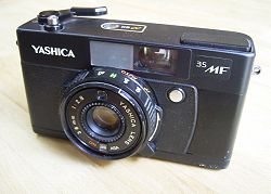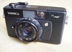 発売年:1976年レンズ:YASHICA LENS 38mm/F2.8 サイズ:129×74×53mm シャッター速度:1/60〜1/250秒 重量:約390g 電池:単3乾電池2個(ストロボ用) H-C型水銀電池1個(露出計用) 当時価格:31000円