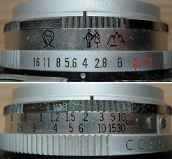 AUTO位置以外では絞り値を任意に設定できる。フィルム巻上げは底部にあるノブで行う。レンズは3群4枚構成。シャッターはCOPAL BEEMAT。