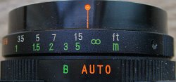 鏡胴リングAUTO位置でプログラムオートとなり、Bはバルブシャッターとなる。また、G.N.リングのストロボガイドナンバーを、FLASH位置にセットすることで、