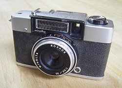 発売年:1963年レンズ:ROKKOR 30mm/F2.8 サイズ:107×66×46mm シャッター速度:B・EV8(1/30秒・F2.8)〜EV16(1/250秒・F16) 重量:約400g 電池:セレン光電池 当時価格:9800円 |