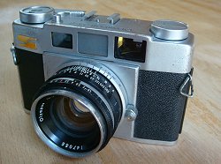 発売年:初期型1957年:後期型1959年レンズ:G.ZUIKO 42mm/F1.8 サイズ:125×78×68mm シャッター速度:B・1〜1/500秒 重量:約670g 電池:なし 当時価格:初期型32800円:後期型21500円 |
