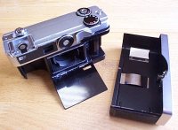 | レストア情報 露出計不動。内部の断線2カ所をはんだ付け。さらに腐食リード線を更新してレストア完了。実に軍艦部の開けにくいカメラ。 レストア大作戦参照 |