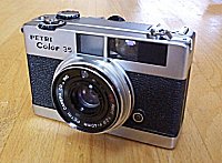 発売年:1968年レンズ:C.C PETRI 40mm/F2.8 サイズ:100×64×45(55)mm シャッター速度:B・1/15秒〜1/250秒 重量:約390g 電池:H-C(MR44)型水銀電池 1個 当時価格:16800円 連動露出計付きのマニュアルカメラ。非常にコンパクト(OLYMPUS PENより若干小さい)でありながらオール金属製で重量感がある。軍艦部にはシャッター速度・絞り・シュー・レリーズボタン・バッテリーチェックボタン・巻き戻しクランクが所狭しと並んでいる。軍艦部背面のダイアルはピントリング。距離計はないが、このダイアルを回すとレンズが前後に動き、ファインダー内にも距離(METER/FEET)が指針表示される。レンズは沈胴式で最大1cm前進する(写真参照)。シャッター速度と絞りを調整すると、適正露出がファインダー内に指針表示される。(定点合致式)電池は露出計専用で、電池がなくてもマニュアル操作は可能。巻き上げた状態で露出計がONになる構造。